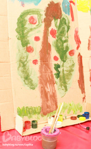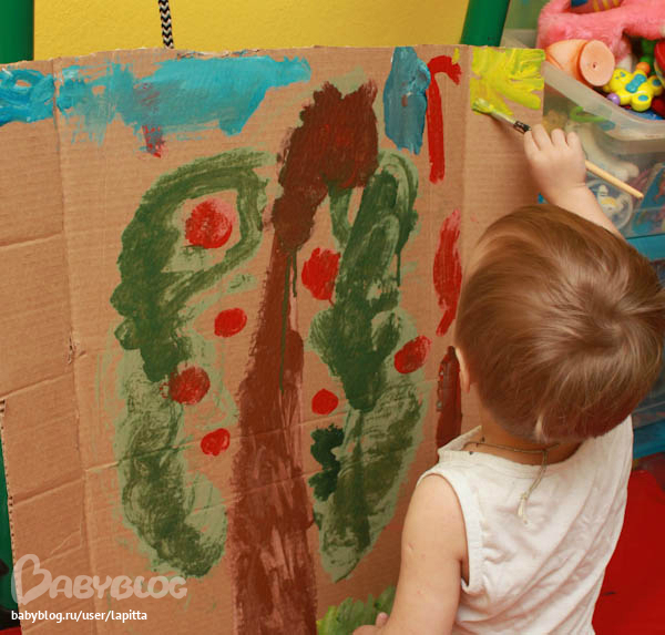 Художка ( красим, рисуем , придумываем новые способы рисовать)От последней покупки остались большие картонные листы. Платон сразу сообразил что с ними делать. Принес гуашь и мы начали рисовать.