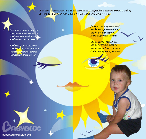 Сделала я для Кирюши еще сказку о Времени. Но пока не распечатала. Хочу потом на цветном принтере напечатать и в папку с фаилами собрать.