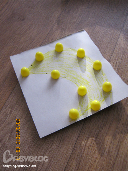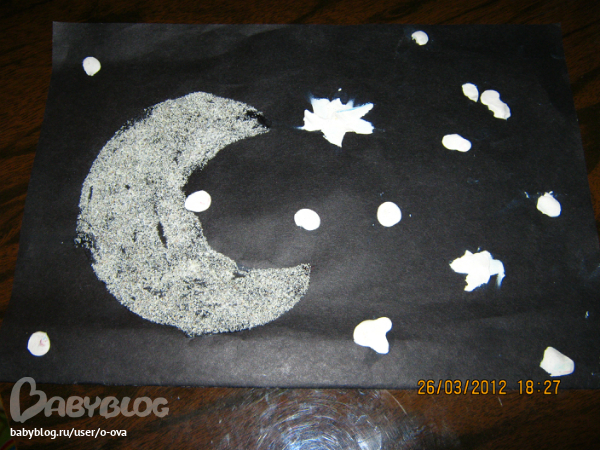 Из мозайки делали луну.Шаблон на картоне с дырочками.