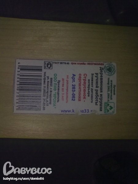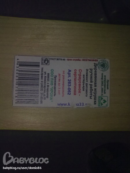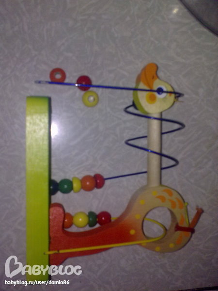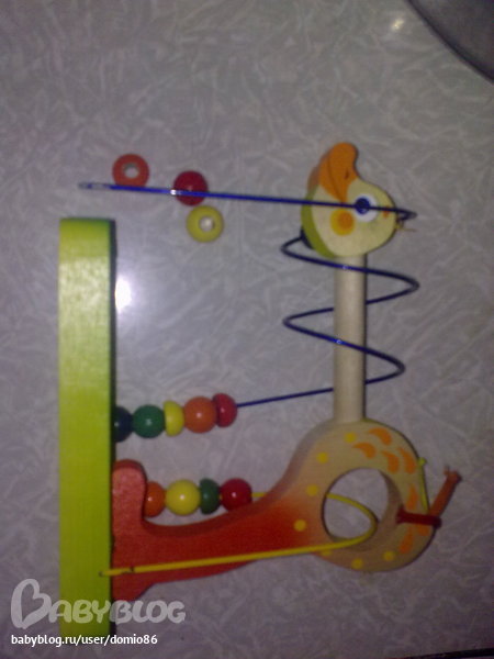 Кстати о птичках,точнее о птичке "Страусенок-серпантинка" того же производителя .После 5-ти дней эксплуатации,вот что с ним случилось.Добавлю,что играла моя племянница,которой почти три года, а вот бусинки потом вытаскивала изо рта своих мальчишек.Кстати эти проволочки на концах очень острые,и даже трехлетний ребенок може пораниться.В общем сделал выводы))))