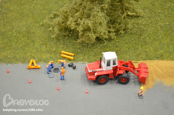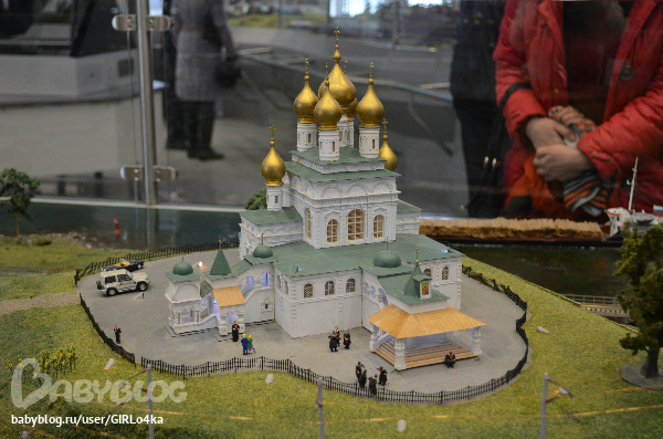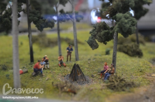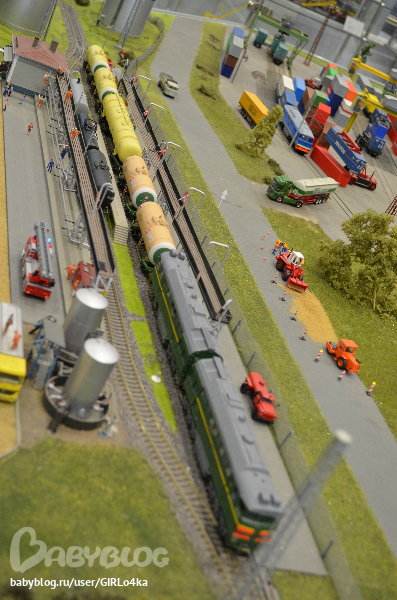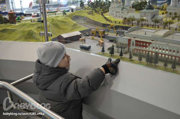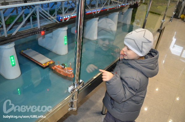 Небольшое помещение с макетами поездов. И главное в центре макет целого города. По рельсам ездит поезд, во дворах дети на качелях, у поста ДПС мигалки работают на машине, фонари на улице светятся. Много мелочей продумано. Очень интересно было разглядывать не только Андрею, но и нам с мужем.