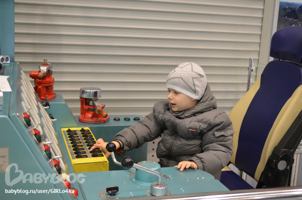 Андрей посидел за пультом машиниста, подергал рычали, пока не наругали...Оказывается, что крутить там нельзя ничего....но Андрей к этому времени уже все осомотрел, что нужно пощелкал, поэтому нитак страшно... отошли. Просмотрели все макеты на стенах.