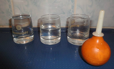 1. клизму ( и налевать ей много, половину, чуть-чуть).