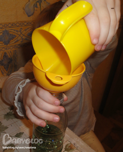 Режим мешуру ножницами, засыпаем в бутылку и заливаем водой