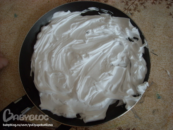Итак, наносим пену для бритья на сковороду и немного размазывааем: