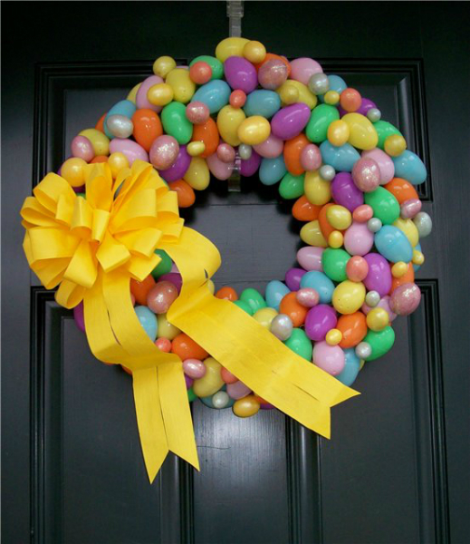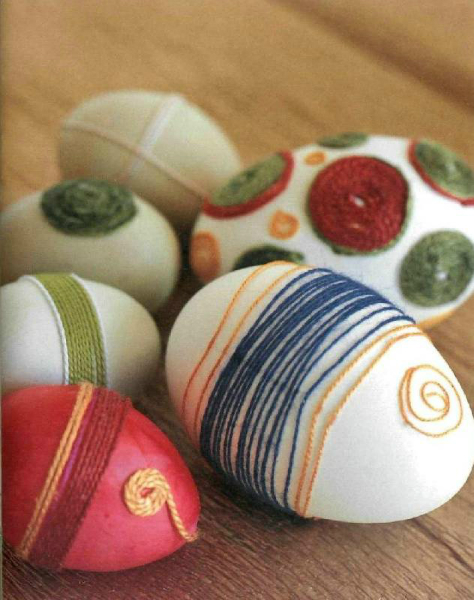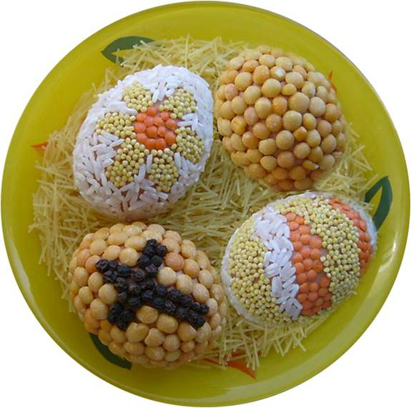 Обмазываете вареное яйцо клейстером, прокатываете его по тарелочке, где насыпана крупа и все.