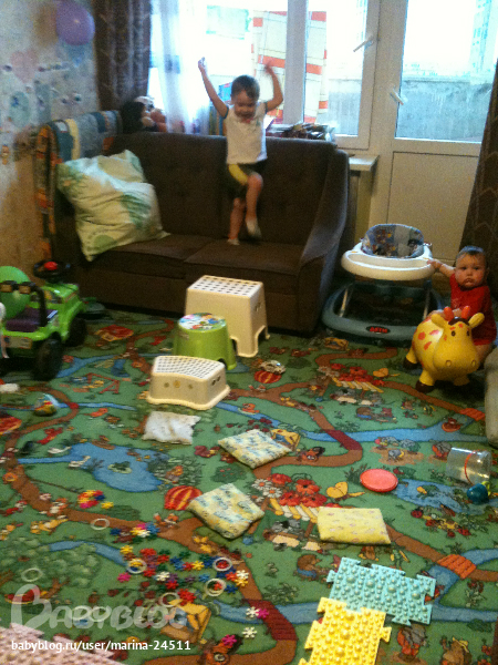 младший его любит трогать, ходить по нему пока не хочет...сразу так смешно ножки поджимает)))
