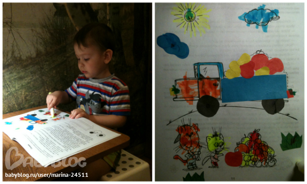Сначала прочитали историю...и решили помочь Мусе и Васе))) потом все наклеили...и очень старались разукрасить так, чтоб за контур не выйти))) ах да...))) "у нас фары светятся! " - сказал Дима и нарисовал "свет")))