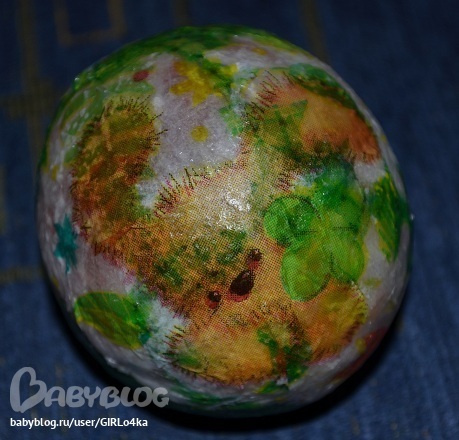 У меня тоже салфетки. И лак акриловый. Верхний цветной слой сняла, покрыла шарик белым двойным слоем несколько раз, потом цветным. Ушло меньше одной салфетки.
