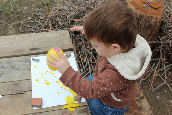 Художка ( красим, рисуем , придумываем новые способы рисовать)В пластиковых яйцах обычно имеются маленькие дырочки - очень удобно для рисования капельками.