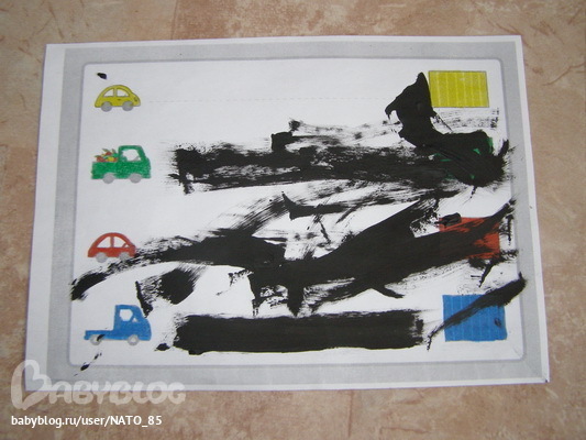 Из работ с красками мы согласились на рисование дороги к гаражам.