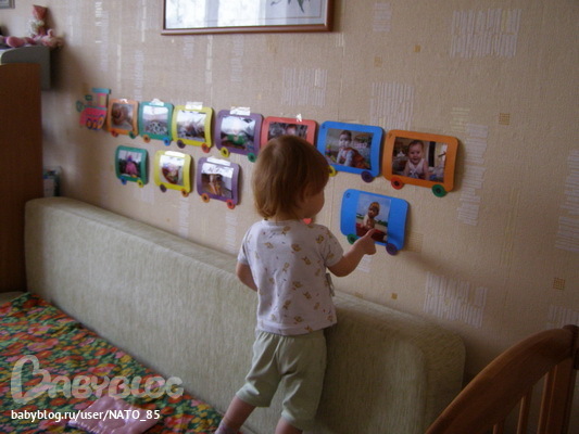 В качестве наглядного материала у нас были развешаны картинки с разными ТС и еще из закромов достали паровозик «Лизок» с 12 вагонами и в каждой фото Лизы в соответствующий месяц (делала его на Годик).