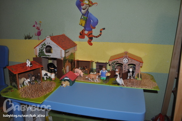 У нас тоже большая ферма)) А игрушки Деагостини и Шляйх. Правда скоро они уже помещаться не будут))
