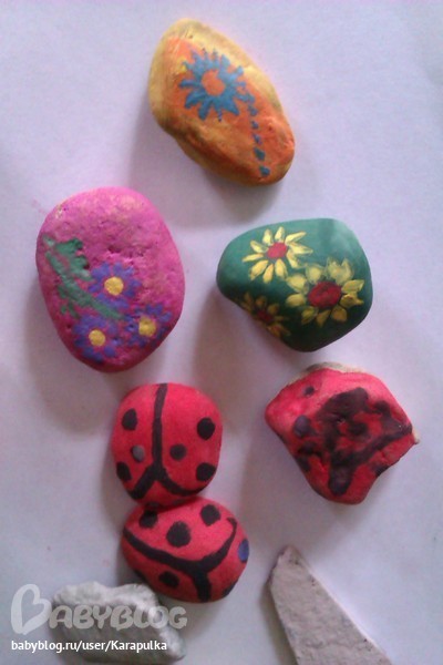 Школа дошколят (все о изучении букв, цифр, развитии логики, памяти, воображения, мышления)Насобирали целую кучу камушков и раскрашивали их в разные цвета. Мало того, что получили массу удовольствия смешивая различные цвета, и используя различные кисточки, ещё и занимаемся теперь с этими камушками.