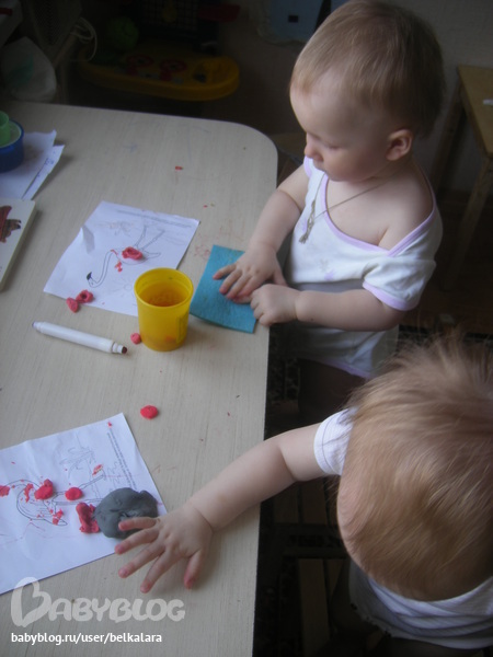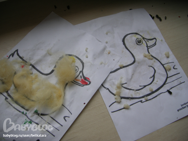 Днем лепили, рисовали, делали аппликаци с крашеной крупой, с шерстью
