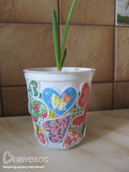 Разное (если затрудняетесь с выбором)В начале апреля сделали симпатичные горшочки, посадили лук-севок и огурцы. Вот, что у нас выросло через 3 недели: