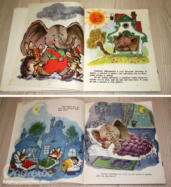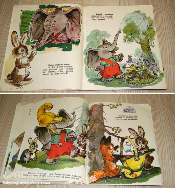 3. А вот от этой книжечки мы балдели вместе. Нашла я ее на библиотечной полке. Такая была у меня в детстве. И ее мы читали на этой неделе много-много раз. Такие в ней иллюстрации добрые и милые и сам рассказ о слоненке хоть и простой, но со смыслом.
