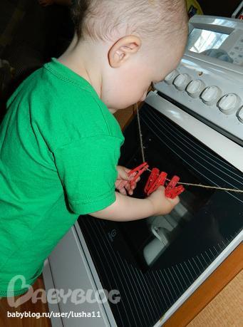 Мальчишки мои любят снимать прищепки с веревки (надевать пока не научились) Вот и приурочила все это к ТН