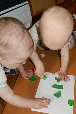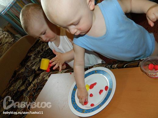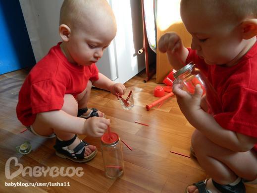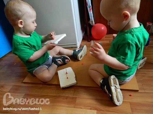 Да, еще заметила у Сени склонность к "ковырянию". Нанизывание бусин, вставляние счетных палочек, прикалывание кнопок, а У Тёмы склонность к разглядыванию книг, особенно мелких деталей, на всякие бусины-палочки усидчивости не хватает))
