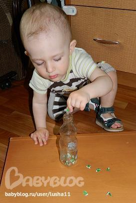 "Катали" шарики из цветной бумаги и кидали в бутылочку