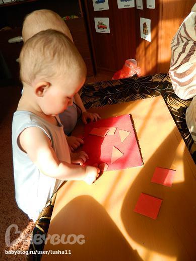Мини-фланелеграф с геометрическими фигурами сынков особо не впечатлил. Все боло разгромлено за 10 минут)))