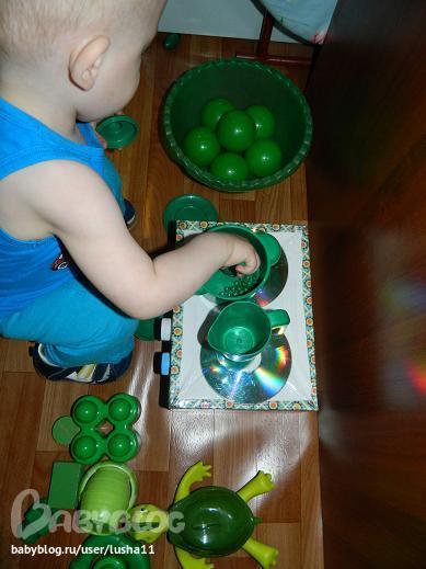 Далее по дням занималки повторялись: игра с игрушками определенного цвета, нанизывание бусин, счетные палочки.лепка, рисование. Буду описывать, что появлялось новое