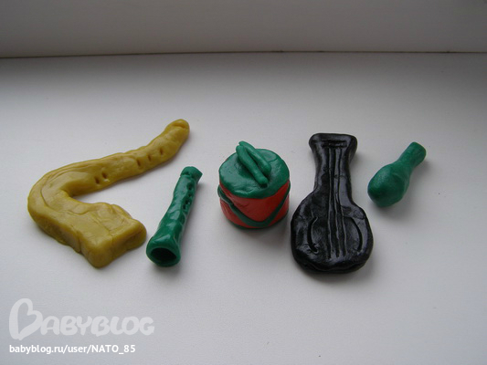Фигурки нам слепил папа из остатков массы для моделирования. На сей раз мы выждали почти неделю и инструменты теперь на самом деле твердые как камень)))