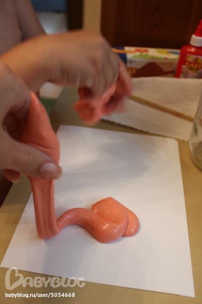 Понадобится: ПВА, Натрия тетраборат, гуашь или пальчиковые краски (для придания желаемого цвета).