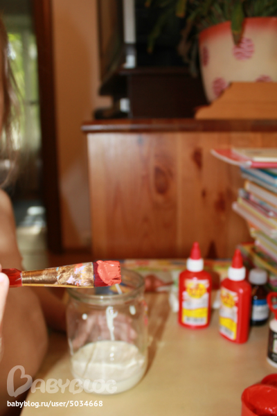 Добавляете желаемый цвет (у нас пальчиковые краски, цвет дочка сама выбрала). Понадобилось 3 раза по такому кол-ву краски:
