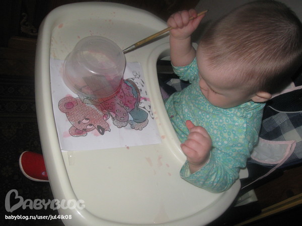 Клево,вы вон как рано уже начали заниматься!!!!Мы пальчиковыми тоже рисуем и обычными,на ватмане )))