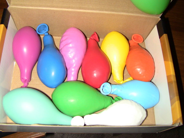 Воздух, ячневая крупа,манка, арбузные семечки,холофайбер,перловка, колотый горох,крахмал, рис, мелкая фасоль Воздух+ пара крупных бобов - получилась этакая погремушка, с весьма мелодичным звучанием. Был еще шарик с водой, но он очень быстро начала "сикать". Пришлось его убрать. Сыну игрушка нравится, перидически мнет их, но по большей части таскает по всей квартире и пытается грызть. Света, спасибо за напоминание и такой простой и увлекательной игре :)