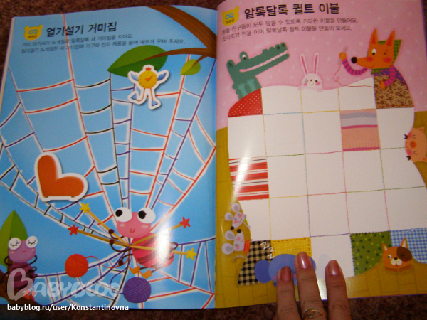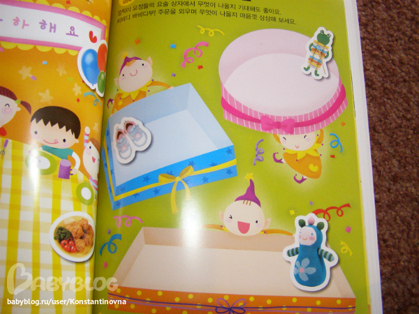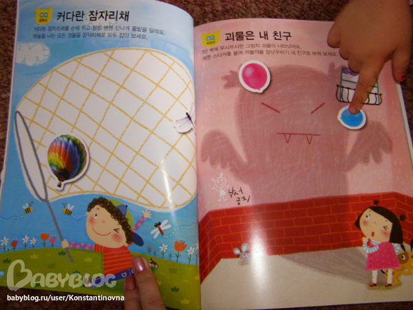 Заказывала подобного плана книжку с историей про семью котов. Там что-то типа комикса (по корейски, естественно, без гугла не разберешься )))) , где по смыслу надо "залеплять" пробелы на страницах наклейками. Качество понравилось, буду брать еще. Жаль, мы пока маленькие, и в полной мере оценить еще не можем ))))