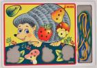 1. Самая первая наша шнуровка, вот такой грибок, у нас с коричневой шляпкой.Очень хороший вариант для первого знакомства карапуза со шнуровкой.Отличное качество, дырочки хорошо обработаны, без зазубрин, удобно держать в руках.Палочка, к которой прикреплен шнурочек сделана в виде гусеницы.Мы не просто шнуровали, а продевая гусеничку в дырочку-кормили ее грибочком.