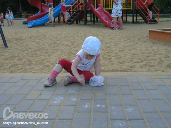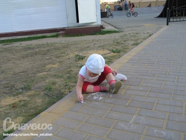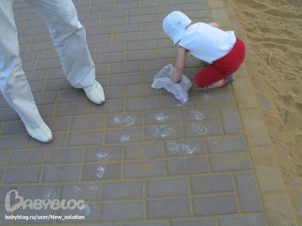 и неожиданно , вместо бегания по горке и варки печосных щей, села Ярославка на асфальт и начала рисовать: часы, Машу, Медведя...
