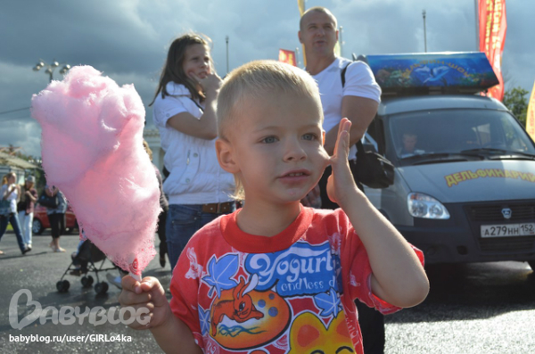 Взяли ему сладкую вату. Весь липкий эксперементировал, как руки к лицу прилипают.
