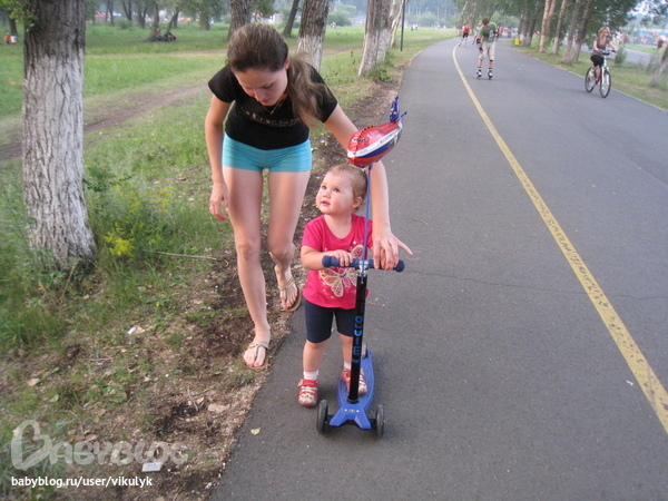 Подвижные игры и спорт ( зарядка, игры на улице и в в воде, танцы, игры с мячом и.т.д.) Купили мы его еще недели три назад, и соответственно где-то в это время мы научились на нем кататься. Приобрела его под впечатлением от поста