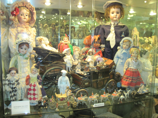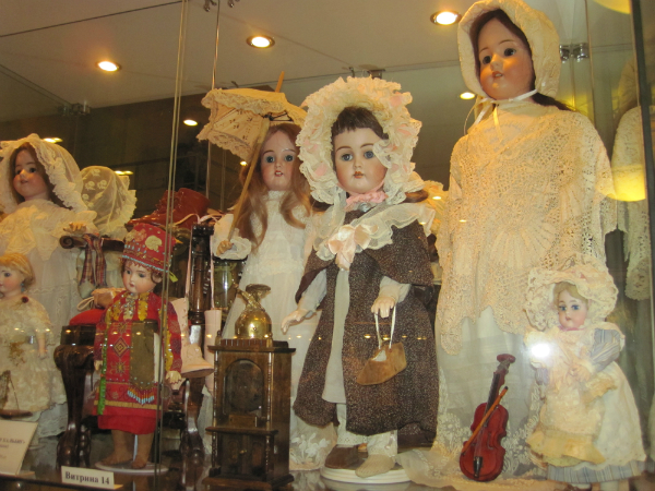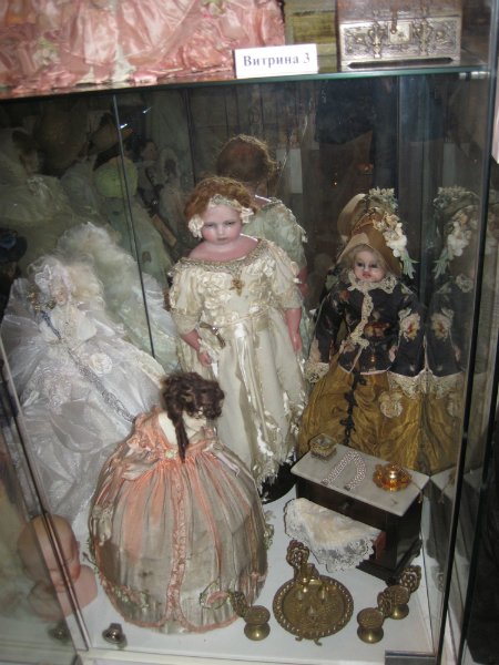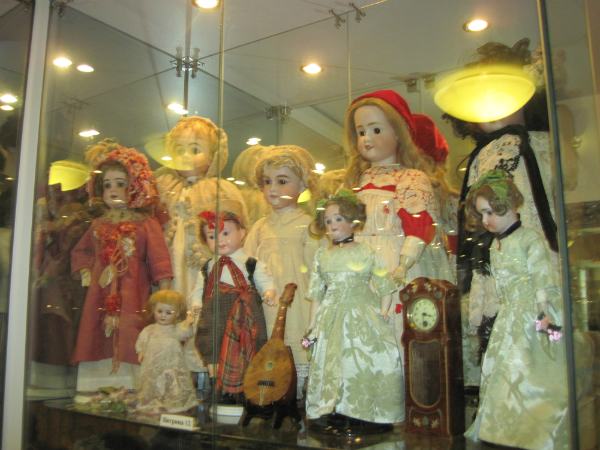 Комнатка небольшая, витрины высокие и хорошо освещены, атмосфера музея спокойная, куклы и правда необычные и очень красивые, так же представлены разные аксессуары к куклам: одежда, посуда, домики, швейные машинки, мебель... Людей почти нет, очень тихо и умиротверенно. Фотографировать можно за отдельную плату, конечно же.