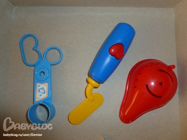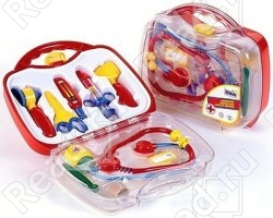 Посмотрела. Стетоскоп у них на батарейках с имитацией звука сердца.По нашему опыту, инструменты прочнее наборов доктора делают. На второй день сломался как раз относительно приличный стетоскоп - недостаточно гибкие дужки (Спасибо, наборы понравились, фирму запомнила. Аксессуаров оригинальных маловато (рецепты-бейджики точно не нужны), а чемоданчик я тоже хочу.