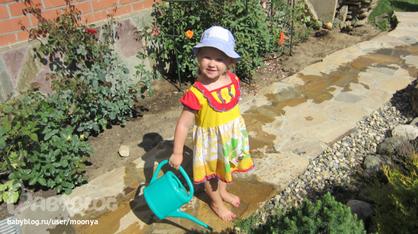 Леечкой делает дорожки и бегает - холодный и горячий камень