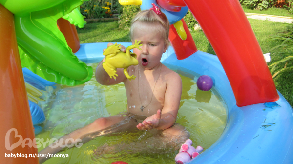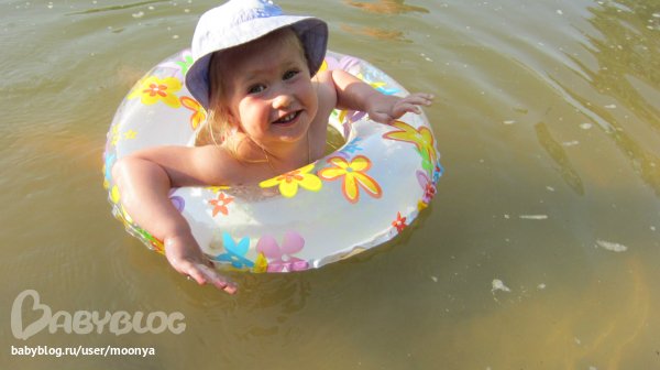 Алиса первый раз поплыла на круге! ура! до этого только ходила по дну. Ее поразило новое ощущение, не могли вытащить, пока губы не задрожали, с криком повелина берег греться. Даже горло охрипло немного, но отошло