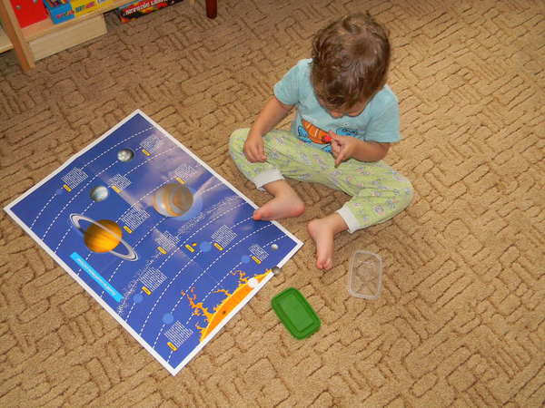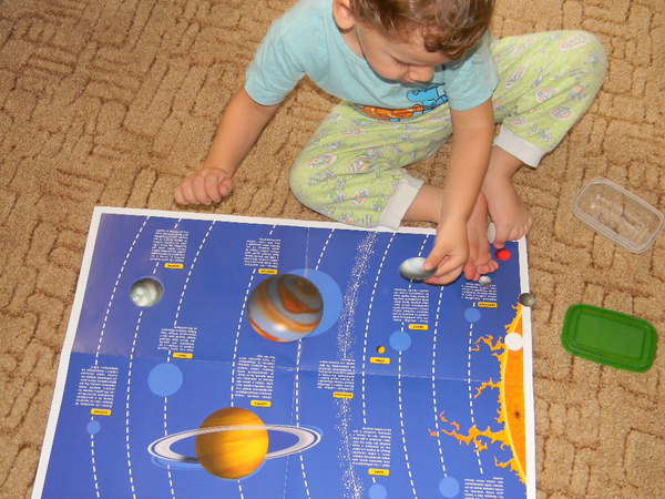 задание из шсг(ссылка) распределяли планеты (там оказалось очень легко потому как все разного размера, так что справился быстро, позже мы их приклеили).