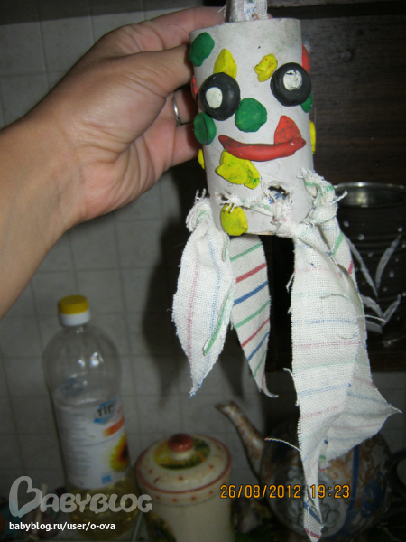 А это "осьминог" - украшен пластилином.Ноги из старых тряпочек.