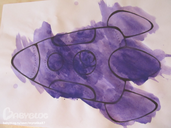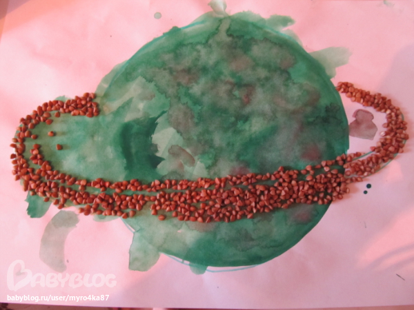 Делали аппликации (летающая тарелка из бархатной бумаги):