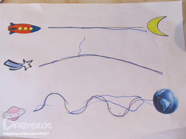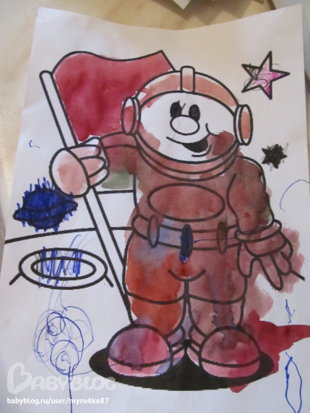 Вывод: разумеется, космос - тема, не слишком подходящая, с педагогической точки зрения, 2-летнему ребенку. Мы пока только начали изучать планеты и звезды, вернемися к теме годика через два и займемся космосом более обстоятельно :)