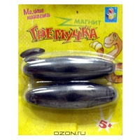 Магниты большие, почти 6 см длиной (хотя без присмотра детей с магнитами я бы все равно не стала оставлять). Гремят громко и очень забавно. Сильно притягиваются к друг другу.