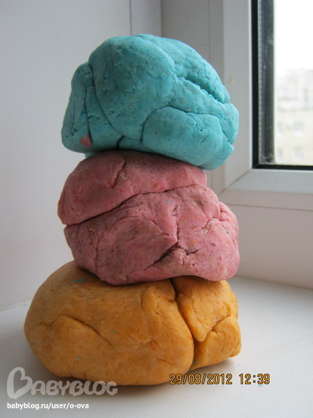 Игры и игрушки от 0 до 99 (Про игры и игрушки которые подойдут и большим и маленьким)А вот от этого теста я сама не могла оторваться, да и сын его из рук не выпускал целый день. Обычное соленое тесто, подкрашенное красителями. Однако в голубое я добавила эфирное масло лаванды, в розовое - корицу, в оранжевое - ваниль. Запахи такие приятные. Ну и плюс цвет...Вообщем рекомендуем.