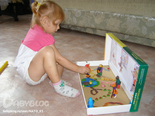 После того, как куклы были готовы, я поняла, что им негде жить... И решила сделать для них дом, но не просто дом, а мини-постановку сказки, чтобы и играть можно было и с пользой для моторики! Вот что получилось.
