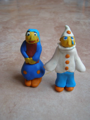 Сначала папа слепил нам основных героев сказки из пластика. Причем началось все с Буратино и пошло-поехало. Только получив Буратино, дочурка стала просить слепить еще и еще, ведь ему одному скучно)))
