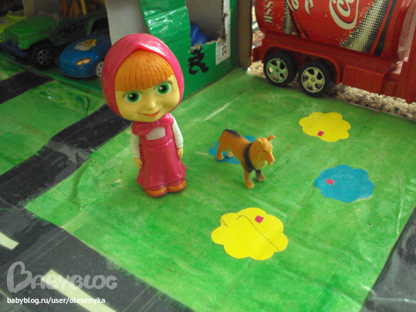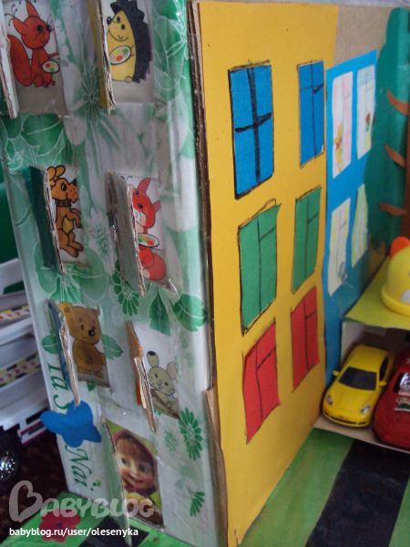 окошки рисовали с сыном)) вобщем, больше он ничем не заинтересовался-разве что оторвал пуговицы со "светофора")) задумок было много-и светофор с лампочками,чтобы загорался,как настоящий. и окна с двигающимися зверушками, и птички, которых снимать можно было бы и вешать...но,видимо, сынок к таким игрухам пока не готов-играют мама с папой))))не понравилась,наверное)))