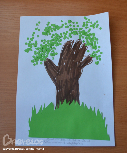 Надо же, мы сегодня тоже такое дерево делали, как мысли сходятся. Только я не догадалась ствол из ладошки сделать.